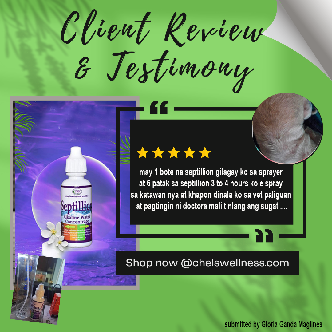 Good day to our dear septillioners and to our birthday girl MAAM DYNA VANDOLA: TESTIMONY: Eto po ay ika 2nd time testimony ng aso ko na c scrappy doo. Yung una may skin desease sya isang sugat na dugo2v tlaga na hindi naayos sa gamot galing sa vet, yung patak ng septillion lng ang nkatuyo sa sugat nya. At ngayon mga 2yrs ago mibalik mga sugat2 (kagid sa bisaya) Dko alam tagal na pla yun hindi kc mkitacdahil sa haba ng buhol mga balahibo kapal na. Dinala ko sa vet kc ipa groom gipakalbo kc init yun nkita lhat sa katawan nya itim2 at pula kawawa ang asa mkita kobsya araw prang d mkatulog sa kati at baho nya. Yun pagpunta ko sa vet tiningnan sa doctor nya sabi funji or allergy sa pagkain so bawal manok, bsta mga karne except lamb. Ganun din recita vet nd herbs ay mat isang syrup at tablet good for 2 months sp binili lahat. Ngayon kalahati nlang ang mga gamot ni dami mn at pulang pula naawa na ako sa aso ko. At may 1 bote na septillion gilagay ko sa sprayer at 6 patak sa septillion 3 to 4 hours ko e spray sa katawan nya at khapon dinala ko sa vet paliguan at pagtingin ni doctora maliit nlang ang sugat ang iba ayos na d nya alam na ginamitan ko sa septillion pinakita ko sa kanya gi picturan nya ang bote. Laki talaga tulong ang septillion at yung hika ko niandar seprilkion lng gi gargle ko every morning. To prove na totoo etong testimony ko.